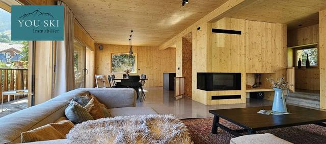 La pièce de vie principale est un véritable rêve : immenses baies vitrées offrant une vue imprenable sur les montagnes, un coin cocooning avec cheminée pour se détendre et se réchauffer, et un spacieux coin repas où cuisiner ensemble et partager de délicieux repas devient un plaisir quotidien. La cuisine ouverte et entièrement équipée, avec lave-vaisselle, grand frigo, four, cafetière à grains, bouilloire, appareil à raclette, grille-pain et vaisselle complète pour 14 personnes, vous invite à vivre pleinement l’expérience conviviale et chaleureuse du chalet.