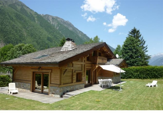 Chalet : Spacieux et confortable, vue sur le Mont-Blanc. Sur place à disposition : terrasse, jardin et garage.