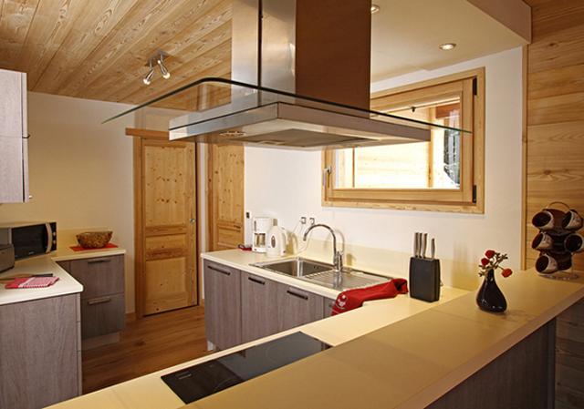 Chalet : De 3 niveaux, exposé plein sud, avec grand balcon. Vue sur la Montagne de la Muzelle. Sur place à disposition : casiers à skis, accès Wifi, cheminée et 2 places de parking.