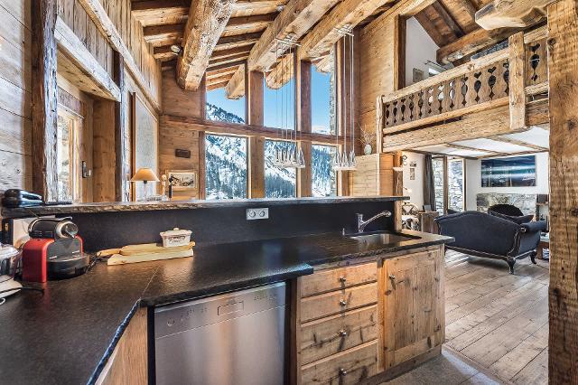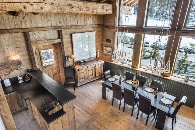Centre ville à 2 Km. Commerces à 2 Km. ESF à 2 Km. Pistes à 100 m. Gare à 35 Km. Chalet familial situé au Fornet. Départ et retour en ski possible, piste du Magnard à proximité et téléphérique du Fornet à deux pas. Chalet traditionnel avec piscine intérieur, salon bilbiothèque et salon TV en mezzanine.