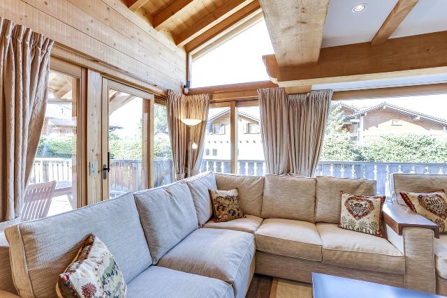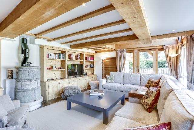 confortables canapés et lourdes tentures offrent un confort bienvenu après les journées sur les pistes. On peut s’y réunir autour du magnifique poêle avant de retrouver le calme et l’intimité de sa chambre. En effet, les neuf chambres sont spacieuses, avec des lits extra-larges, et sept d’entre elles possèdent leur propre salle de bain. Les deux chambres du rez-de-jardin en partagent une, complète avec douche, baignoire et wc.