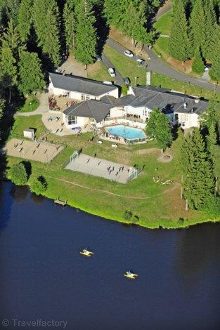 En bordure de plan d’eau, le club vacances propose des pavillons et une partie camping 3 étoiles avec des mobil-homes entièrement équipés.