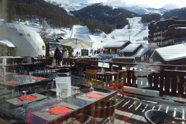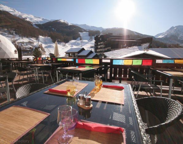 - Restaurant disposant d’une grande terrasse ensoleillée avec vue panoramique sur la station.