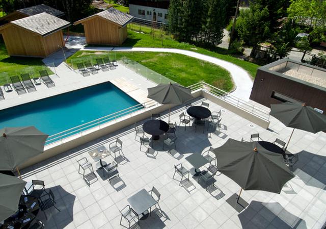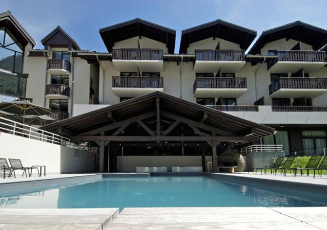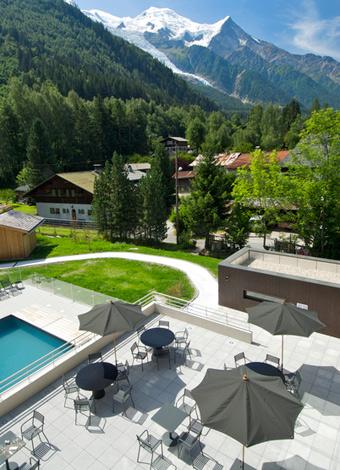 A cinq minutes du centre ville, au pied de l’Aiguille du Midi, Les Aiglons*** bénéficie d’un design et d’aménagements audacieux, de couleurs chaudes et modernes, du minéral et du verre, de la lumière.