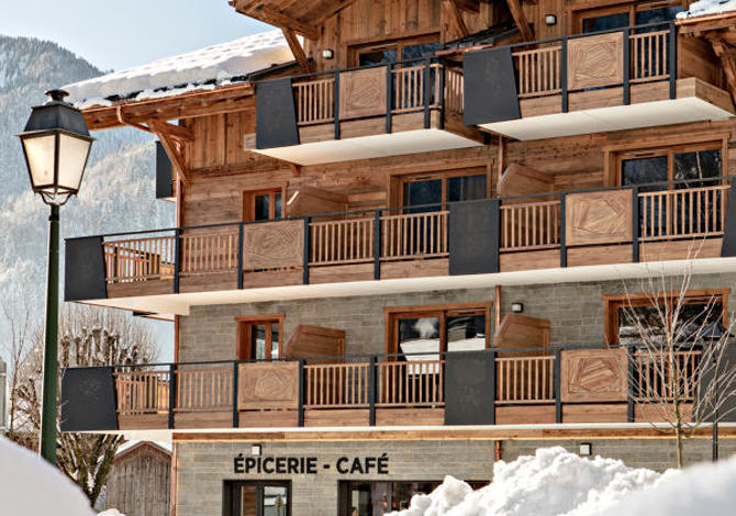 Résidence : Façade authentique et atmosphère moderne, les chambres sont spacieuses et lumineuses avec balcon. Services inclus : salon avec cheminée, piscine, sauna, hammam, local à skis avec sèche-chaussures et bagagerie. En supplément : buanderie et accueil VIP.