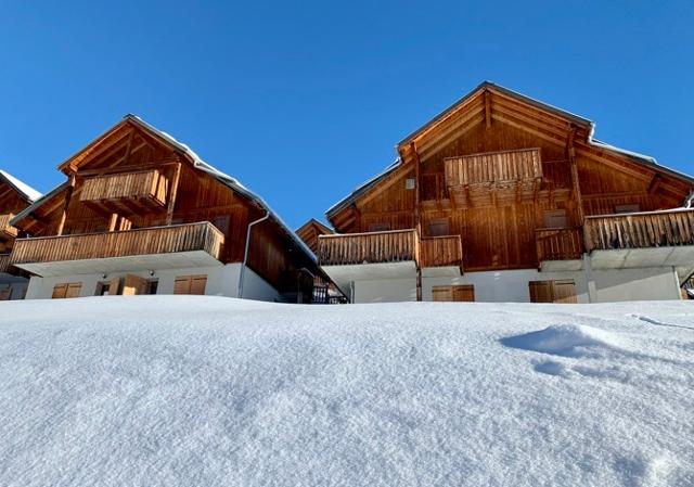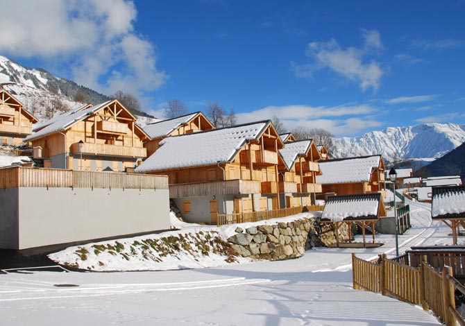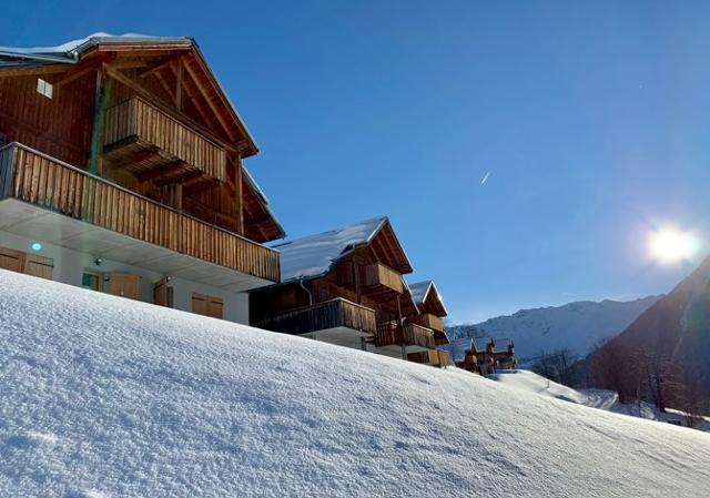 Résidence : Ensemble de chalets en bois de 5 appartements chacun, orientés plein sud, avec balcon ou terrasse. Sur place, à disposition : piscine extérieure chauffée, sauna, hammam et salle de fitness.