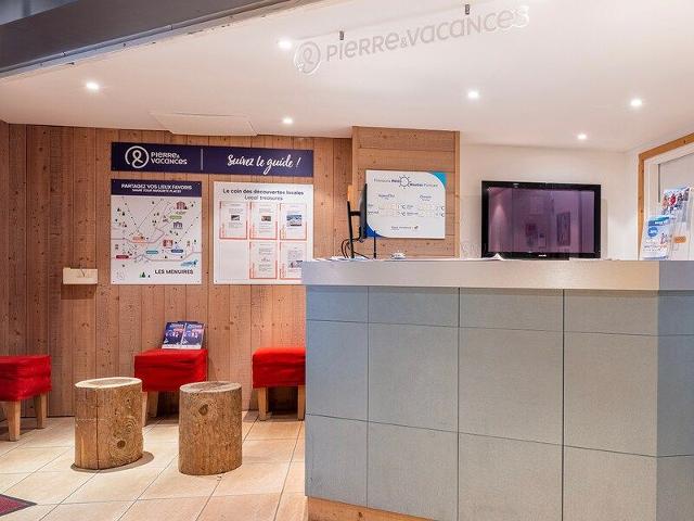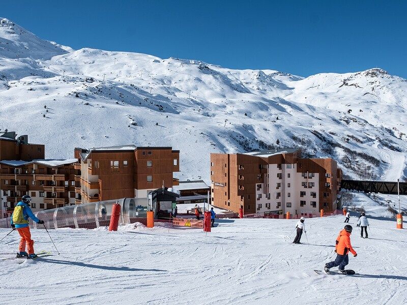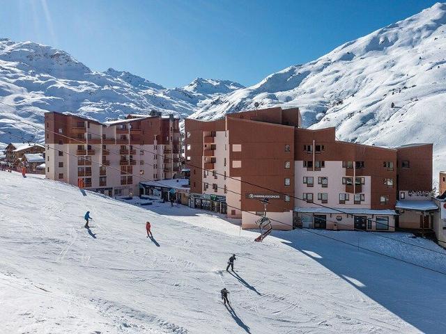 Résidence de haute altitude (1800 m), skis aux pieds et à l'entrée du quartier piétonnier des Bruyères.