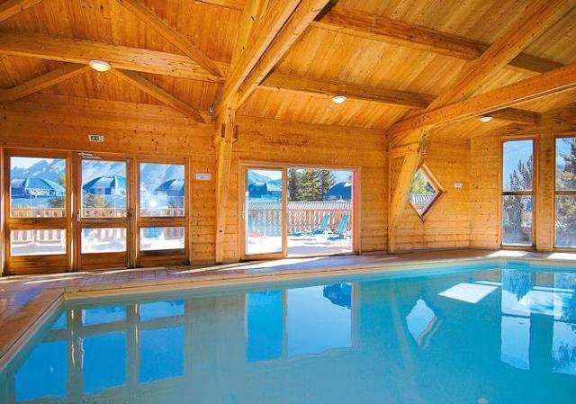 Résidence : 94 appartements confortables et tout équipés, avec balcon ou terrasse. Grands chalets ou chalets mitoyens. Sur place à disposition : piscine intérieure chauffée, casiers à skis et parking couvert. En supplément : billard et laverie.
