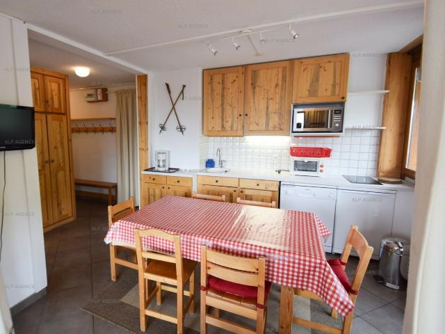Appartement 2 pièces, 5 pers., 41m2, Balcon exposé Ouest/Nord, vue sur la station - 7ème étage avec ascenseur Cuisine ouverte sur séjour : 2 plaques vitro-céramiques, réfrigérateur, four et four Micro-ondes/grill, lave-vaisselle, cafetière électrique - Séjour : 2 lits 1 pers, coin repas, TV - Chambre : 2 lits superposés, 1 lit 1 pers - Salle de bains : baignoire - WC séparés - Literie : couvertures - Les sols : moquette, SDB/entrée/ séjour : carrelage - Animaux non-admis. Appartement très lumineux, situé au c?ur de la station. NON FUMEURS - Ménage de fin de séjour, draps, serviettes et forfaits ski en option. Casier à skis n°71 au rdc -