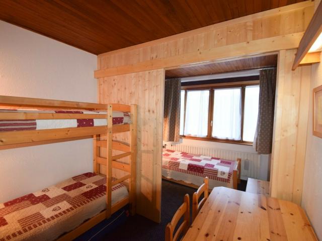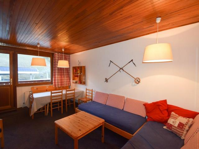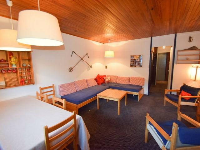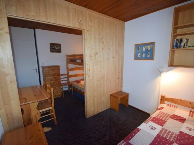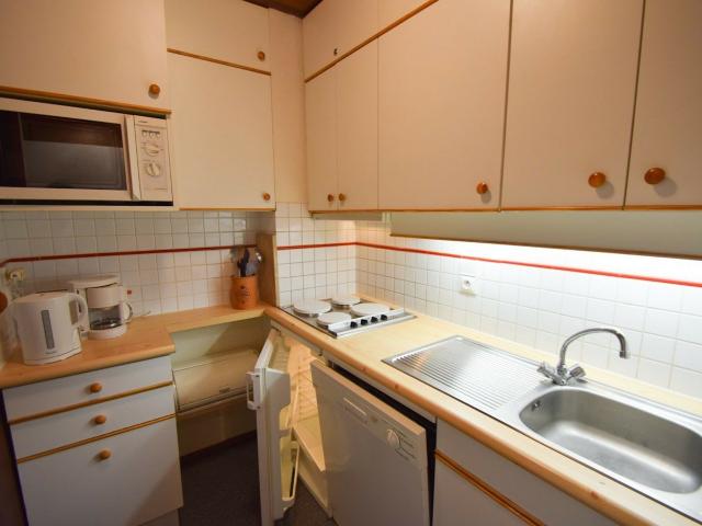 Appartement 5 pers, 45m2, exposé au Sud, avec balcon, vue sur les pistes, au 1er étage sans ascenseur. Cuisine séparée : 4 plaques électriques, four micro-ondes/grill, réfrigérateur, lave-vaisselle - Séjour : 2 lit banquettes 1 pers, coin repas, TV. Chambre se sépare en 2 par une porte coulissante : 2 lits superposés 1 pers et 1 lit 1 pers. Salle de bains : baignoire, WC séparés - Literie : couvertures. Sols : cuisine : plastique, séjour et chambre : moquette, sdb : carrelage. Ménage de fin de séjour, draps, serviettes et forfaits ski en option. Appartement très bien situé directement sur les pistes, en front de neige au c?ur de la station. Casier à skis n° 15 au RDC - LE SHANGRILLA : résidence de 2 étages, avec accès direct sur les pistes, à proximité des commerces.