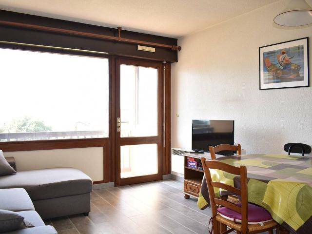 REF 155-06 -2 PIECES CABINE exposition Sud, au Rez de chaussée d'une petite résidence située à 800 mètres du centre ville dans quartier résidentiel, le ski-bus passe à proximité. Chauffage individuel électrique et production d'eau chaude par cumulus.