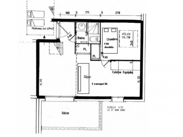 2 PIECES + MEZZANINE (sous pente) de 25 m2 + 18 m2 > 1.80m situé au troisième étage avec balcon exposé NORD.