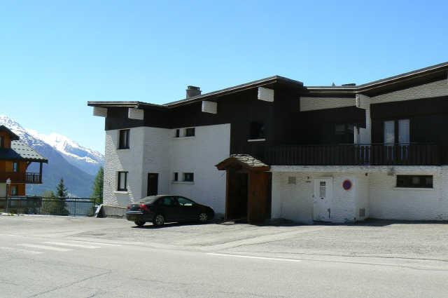Grand balcon exposé plein Sud avec vue sur la vallée et les montagnes environnantes. Deuxième étage de l'immeuble (Accès Niveau -2). Consigne à skis.
