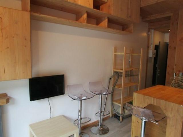 Studette située au 2ème étage (accès par escalier et ascenseur) 15 m² en exposition Sud avec balcon, comprenant un séjour avec canapé lit et un lit en hauteur en 90, téléviseur, une salle de douche avec toilettes. Kitchenette équipée micro ondes, 2 plaques induction, combi four micro ondes, lave vaisselle, cafetière électrique, réfrigérateur. Parquet au sol. Casier à skis en rez de chaussée.