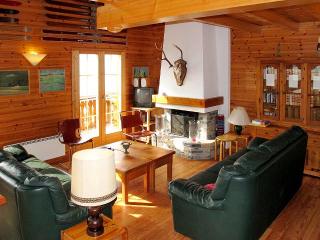 Séjour(1er étage): coin salon, cheminée, sortie balcon. Du séjour escalier au niveau supérieur, au niveau inférieur.