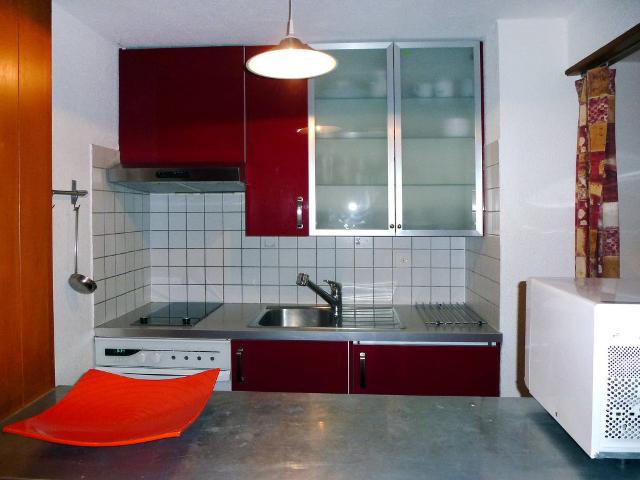 Cuisine: ouverte sur le séjour. Équipement de la cuisine : 2 plaques vitro-céramiques, four, micro-ondes, réfrigérateur, cafetière électrique, bouilloire électrique, grille-pain, appareil à fondue.