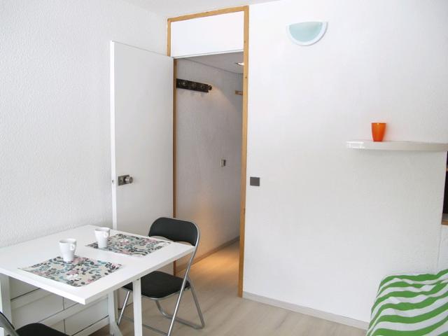 L'appartement: situé au 4ème étages, surfaces de 15m² avec balcon, exposition est. Séjour avec lit gigognes 2 places. Coin repas avec table pliante. Cuisine équipée d'un mini-four, plaques vitrocéramique. Salle de douche avec wc. Casier à ski.