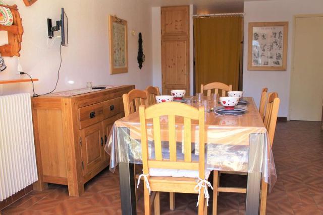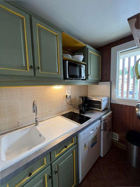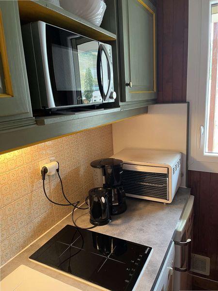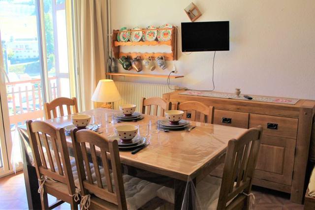 Le logement : Cet appartement de location vacances avec un balcon exposé Sud, se compose d'un coin cuisine équipé et d'un séjour avec deux lits gigognes une place. Vous trouverez un coin montagne à l'entrée avec deux lits superposés une place (séparation avec rideau) ainsi qu'une salle d'eau avec douche et des WC indépendants.