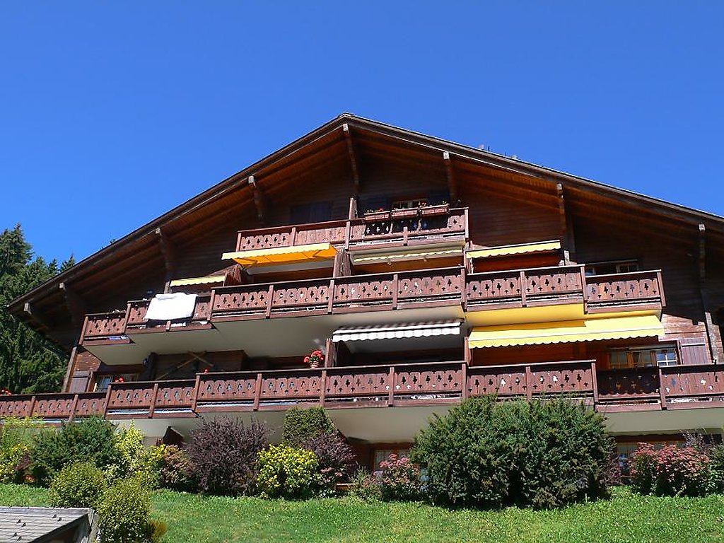 Chesières: Résidence "Chaperon Rouge A, B". À 500 m du centre de Chesières, à 1.5 km du centre de Villars, situation tranquille, ensoleillée, orientée sud. Infrastructures de la Maison: local pour les skis, lave-linge, sèche-linge (en commun, en sus). Accès en voiture jusqu'à la maison par un chemin raide. En hiver, merci de prévoir des chaînes. Magasins 1.5 km, magasin d'alimentation 500 m, restaurant 400 m, boulangerie 500 m, arrêt du bus 400 m, gare ferroviaire "Villars" 2 km, piscine couverte 1.5 km, centre thermal 19 km. Port plaisance 25 km, terrain de golf (18 trous) 8 km, tennis couvert 2.8 km, centre sportif 2.8 km, train de montagne 2 km, téléski 2.7 km, télécabine 1.8 km. Arrêt du ski-bus 400 m, école de ski 1.9 km, école de ski d'enfants 2.8 km, patinoire 1.5 km. Veuillez noter: sans ascenseur. Service de navette gratuite desservant le domaine skiable Villars.