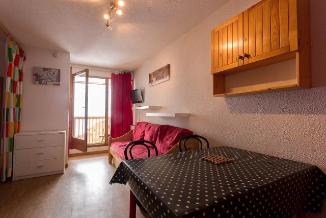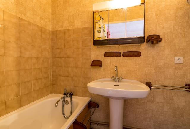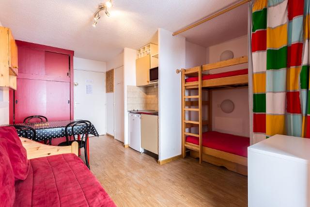 Cet appartement est composé d'un séjour - kitchenette, un coin montagne avec deux lits superposés, une chambre avec un lit double et une salle de bains avec les toilettes.