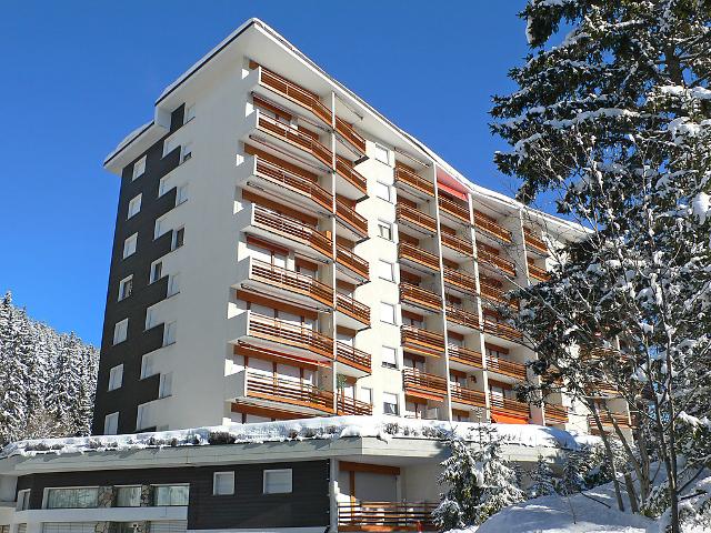 Résidence "de la Forêt". En bordure de la localité, à 1 km du centre de Montana. Infrastructures de la Maison: ascenseur, lave-linge, sèche-linge (en commun, en sus). Parking public couvert à 400 m, en sus. Arrêt de bus "Résidence Forêt" 10 m. Remontées mécaniques 400 m. Route de Vermala: bus navette en circulation en hiver et fin juin à mi-septembre.