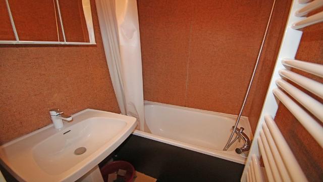 - Dans l'entrée à gauche, une cabine sans porte de séparation avec lit superposé, WC indépendants et une petite salle de bain avec baignoire.