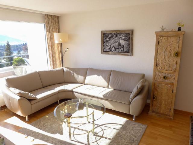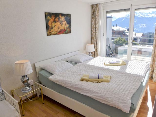 Belle résidence accueillante "Jeanne d'Arc". Dans le quartier de, en bordure de la localité, à 200 m du centre de Crans-Montana, situation ensoleillée, excellente situation: centrale mais tranquille, à 20 m du lac, orientée sud. En commun: piscine couverte chauffée (90 m2, disponibilité saisonnière: 01.Jan. - 18.Avr. et 01.Jun. - 31.Dec. horaires d'ouverture de la piscine: 08:30-20:00). Tennis (01.Jun. - 30.Sep.). Infrastructures de la Maison: sauna (en sus). Ascenseur, local pour les skis, chauffage central. Place de parking (nombre de places limité). Magasins 500 m, supermarché 400 m, restaurant 150 m, bar 50 m, centre à 5 minutes à pieds, arrêt de bus "Lac Grenon" 350 m, lac Grenon 20 m. Terrain de golf (18 trous) 1.3 km, tennis 1.2 km, tennis couvert 1.2 km, centre équestre 1.5 km, remontées mécaniques 650 m. Patinoire 450 m, jeux pour enfants 220 m. Attractions à proximité: Casino 600 m. Les lacs connus sont facilement accessibles: Lac de La Moubra 1.3 km, Etang Long 1.3 km. Veuillez noter: ski-bus gratuit. D’autres appartements sont également proposés à la location dans cette maison de vacances. Connexion internet sans fil et gratuite dans le hall de l'immeuble. S'informer à Interhome pour le mot de passe. La piscine (environ 26°) ferme quelques semaines au printemps. Sauna : ouverture et horaire idem que la piscine.