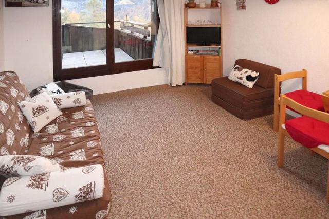 En coeur de station au 8 ème et dernier étage de la résidence avec ascenseur, départ skis aux pieds, à proximité immédiate des activités et commerces, grand studio équipé pour 4 personnes composé un coin montagne avec 2 lits superposés 1 place dans l'entrée, un séjour avec une banquette convertible pour 2 personnes (2 lits gigognes 1 place se mettant à niveau), un coin cuisine équipé ouvert sur le séjour, une salle de bains et WC indépendants. Balcon exposition Sud offrant une belle vue dégagée.