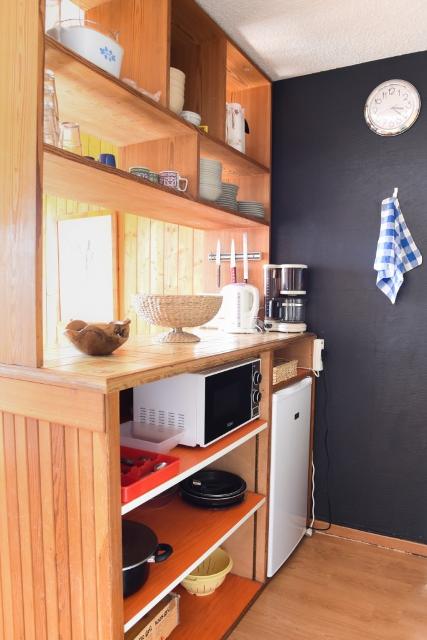 - une cuisine équipée de 4 plaques électriques, un lave-vaisselle, un micro-ondes, un réfrigérateur TOP, une bouilloire, une cafetière électrique à filtres, un grille-pain.
