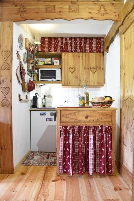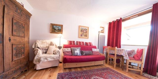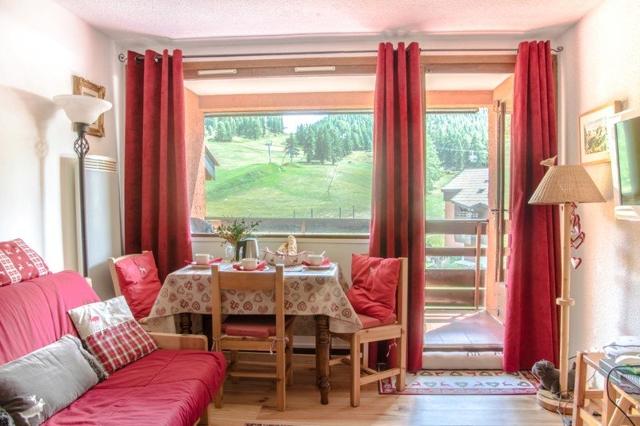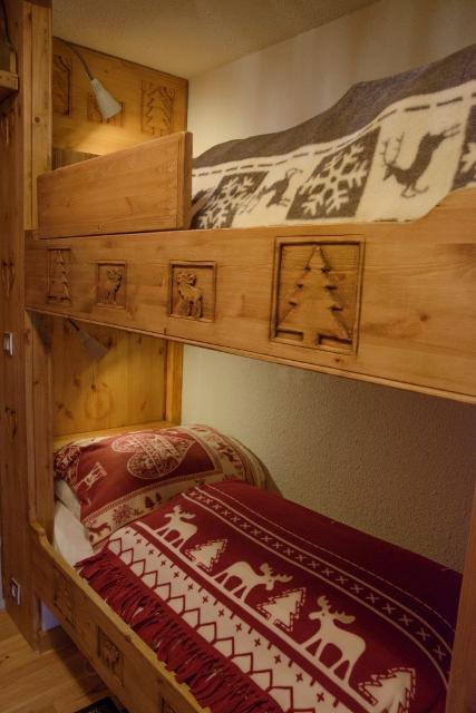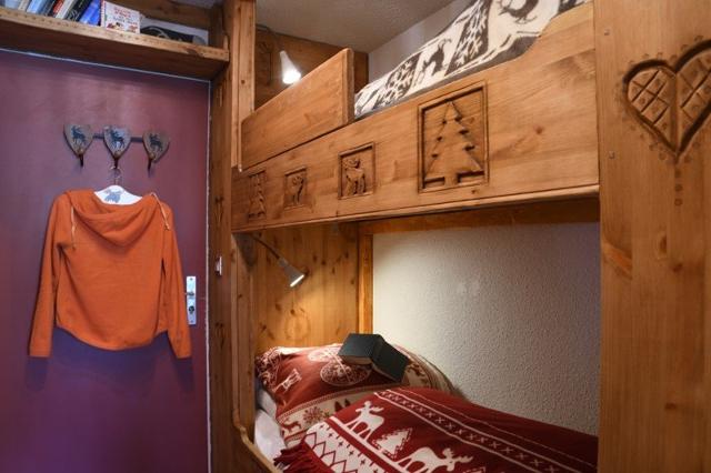 Beau studio avec du parquet situé au 4ème étage de la résidence avec ascenseur. Il est composé d'un coin montagne dans l'entrée avec des lits superposés, une sdb avec baignoire et wc, et un séjour avec un canapé convertible en 160 cm et une télévision donnant sur un balcon avec vue sur les pistes exposition sud. Le coin cuisine est équipé de plaques vitrocéramiques, d'un lave-vaisselle, un frigidaire et un micro-ondes.