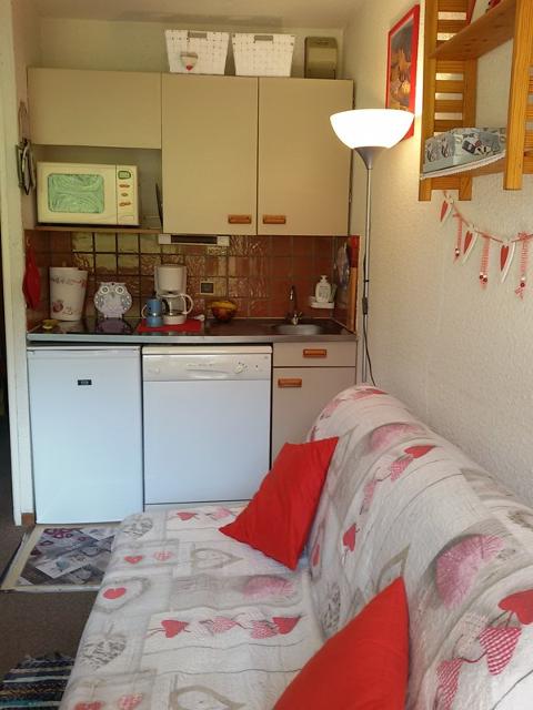 - la kitchenette possede deux plaques vitrocéramiques, un lave-vaisselle et un micro-ondes. - accès direct aux pistes de cet appartement en rez de jardin.