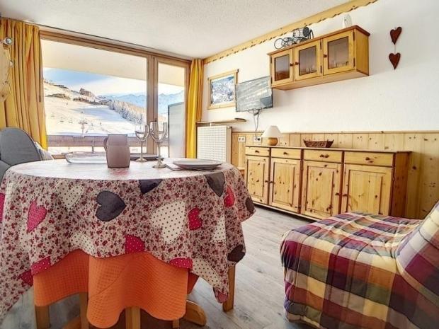 Joli studio de 24m² pour 3 personnes. Il est situé au coeur de la station, au 5ème étage d'une résidence skis aux pieds, proche du départ des remontées mécaniques et du point de départ ESF. Le studio possède un balcon orienté Sud.