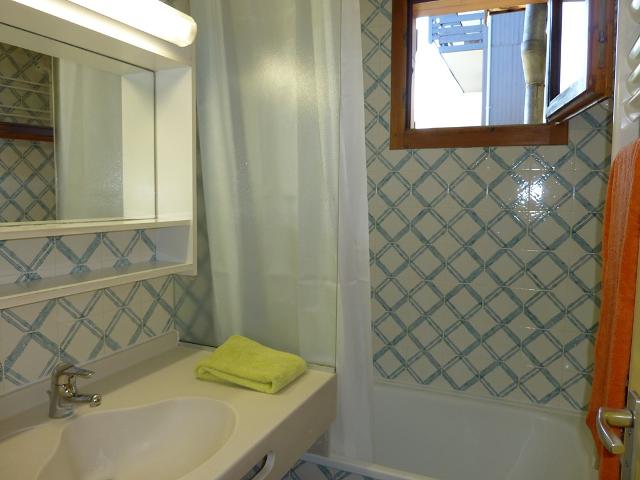 - Salle de bain avec baignoire, sèche-cheveux et sèche-serviettes,