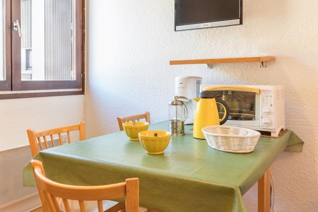 Ce petit studio à la montagne comprend un séjour avec canapé-lit pour deux et une télévision, une cuisine et une salle de bain avec WC. Possibilité de garer votre véhicule sur le parking extérieur de la résidence.