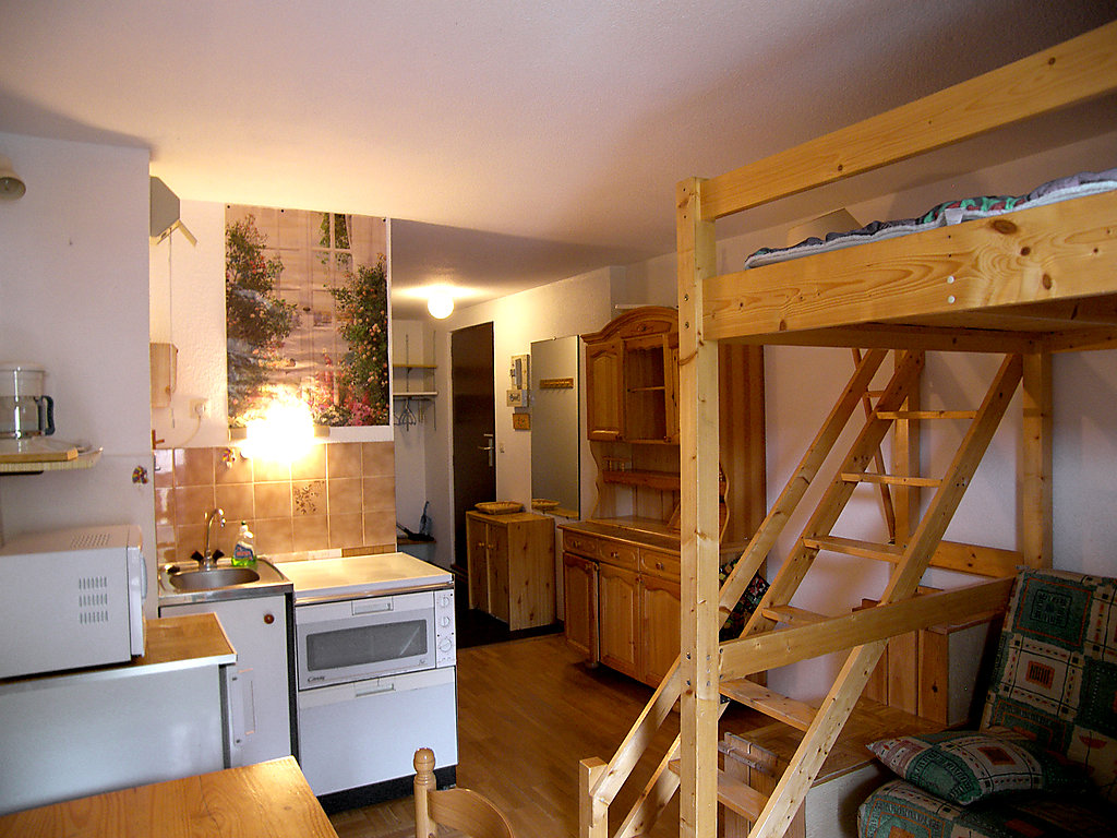 Studio 24 m2 au 1er étage. Aménagement simple et fonctionnel: séjour/salle à manger avec 1 divan-lit double (140 cm). Alcôve avec 1 divan-lit double (140 cm, longueur 190 cm). Coin cuisine (4 plaques de cuisson, four micro-ondes). Bain/WC. Chauffage électrique. Balcon, situation ouest. A disposition: Internet (Connexion WIFI, en sus).