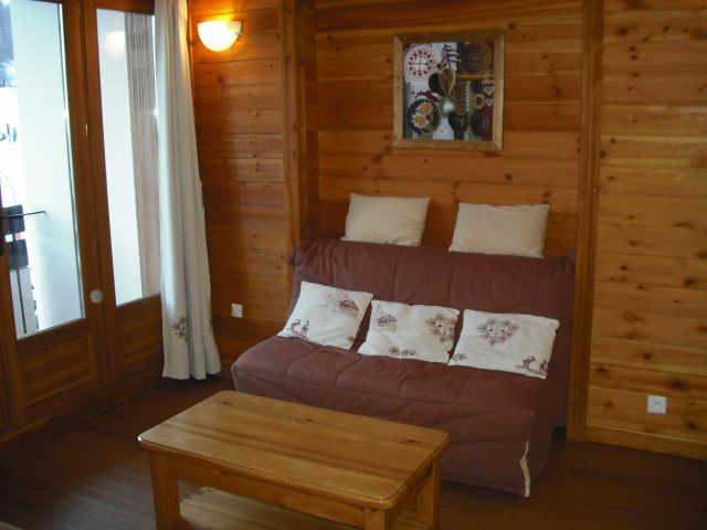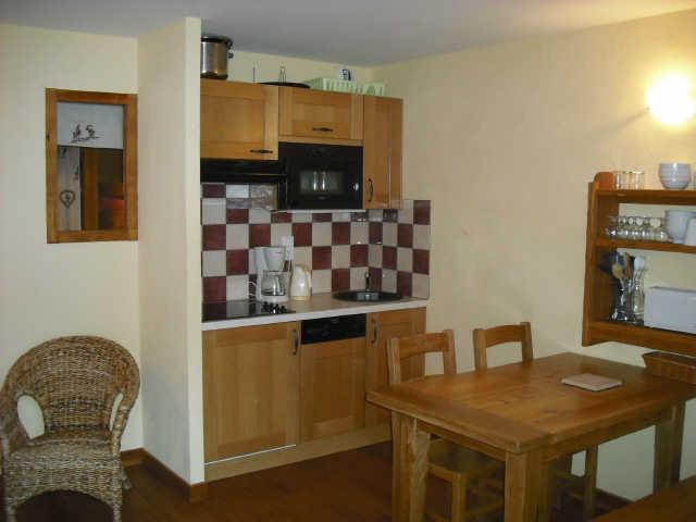Coin cuisine équipé : réfrigérateur, plaque vitrocéramique, micro-onde, cafetière... Séjour avec canapé lit BZ. Balcon plein Sud avec vue sur les pistes.