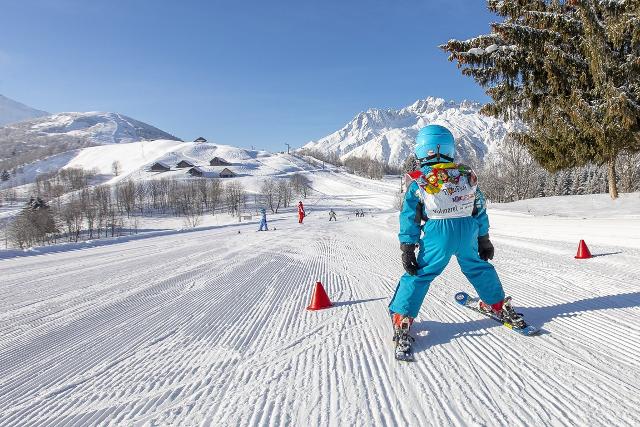 Proche du centre station, vous êtes à 10mn à pied de l'épicerie, des bars restaurants et différents commerces ; mais aussi de l'ESF, des magasins de location de skis et snowboard et des Clubs Piou Piou et bébé.