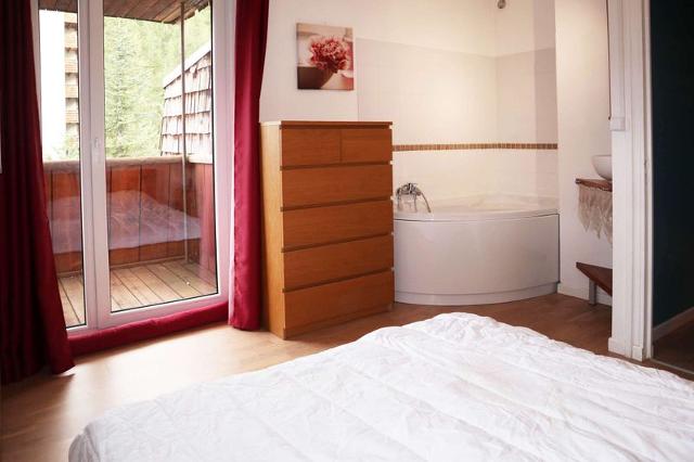 Grand appartement 2 pièces pour 6/8 personnes au 6ème étage avec ascenseur, très bien situé dans la station avec un accès direct aux pistes, comprenant : une entrée, deux coins montagne avec chacun 2 lits superposés 1 place, un séjour avec une banquette convertible 2 places, un coin cuisine entièrement équipé ouvert sur le séjour et un balcon, une chambre parentale avec 1 lit 2 places et balcon, une grande baignoire d'angle et meuble vasque, une seconde salle d'eau et wc séparés. Belle exposition Est, vue sur la vallée et les montagnes. Proche jardin d'enfants et garderie.