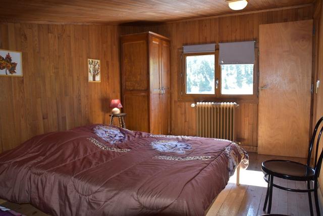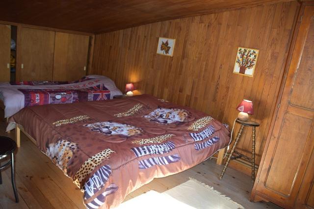 A l'étage vous trouverez 2 chambres en enfilade avec vue sur les pistes. La première est composé de 3 lits simples et de placards, la seconde d'un lit en 180 cm, un lit simple en 90 cm et divers placards.
