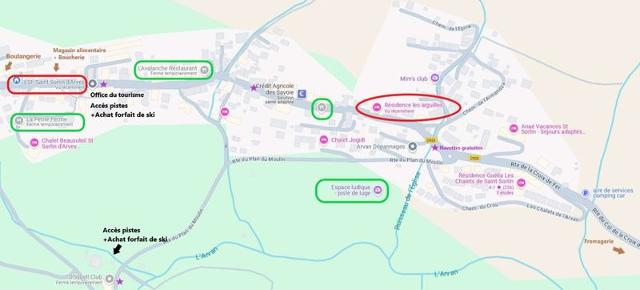 L'appartement se trouve dans la résidence LES AIGUILLES, située entre la mairie et l'église de St Sorlin d'Arves. L’emplacement est parfait : en plein cœur du village, vous êtes à proximité de tout. Magasin de ski et restaurant à 100 m, pistes, école de ski, garderie et office de tourisme à environ 600 m. La navette gratuite est disponible en hiver pour vos déplacements, tandis qu’en été, vous pouvez emprunter le petit train du village, pratique et charmant pour découvrir les environs.