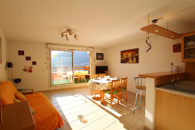 Il se compose d'une entrée desservant les WC séparés, une salle de bains avec douche, une chambre spacieuse et lumineuse avec lit 2 places en 160x200 avec jolie vue, le coin montagne avec un canapé-lit BZ 160x200.