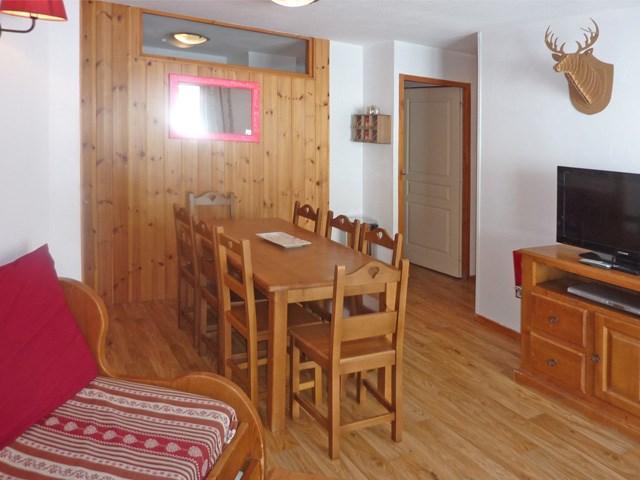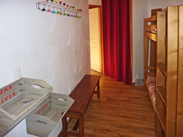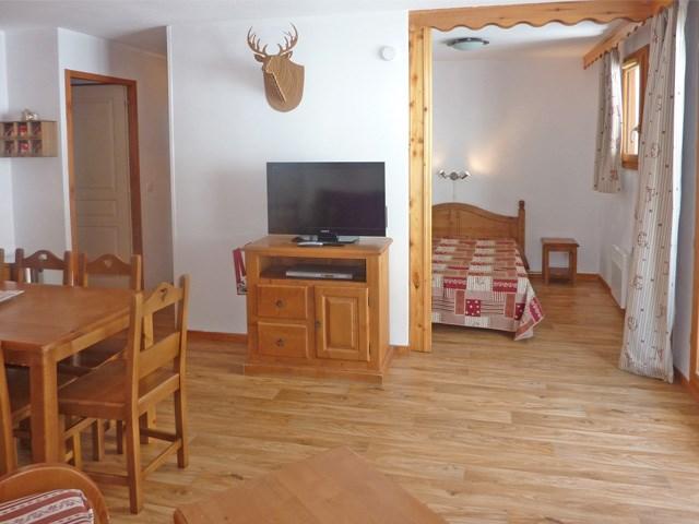 Dans une résidence 3 * avec accès gratuit à la piscine et au sauna, joli appartement équipé pour 8 personnes, vue sur les pistes, accès direct aux commerces, comprenant une entrée, un coin montange avec 2 lits superposés 1 place, une chambre avec 2 lits 1 place, une deuxième chambre avec 1 lit 2 places, un séjour avec 2 lits gigognes 1 place, un coin cuisine entièrement équipé, salle de bains et wc indépendants, balcon. Box à skis. Rez-de-chaussée.