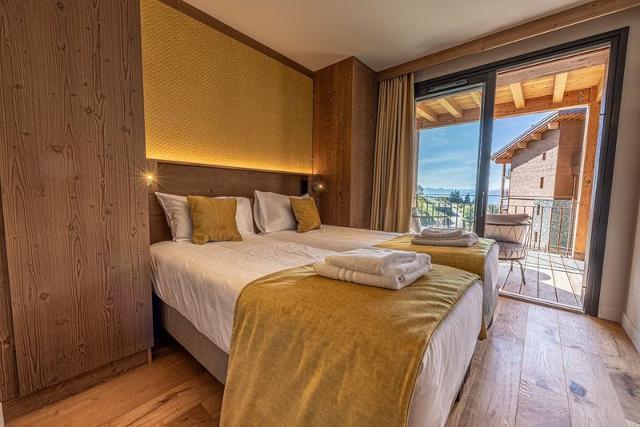 Appartement NEUF 6 personnes, 64 m² avec 2 chambres + 1 coin montagne et 1 grande TERRASSE orientée Ouest avec une magnifique VUE PANORAMIQUE sur le Mont Blanc. Décoration chic et contemporaine !