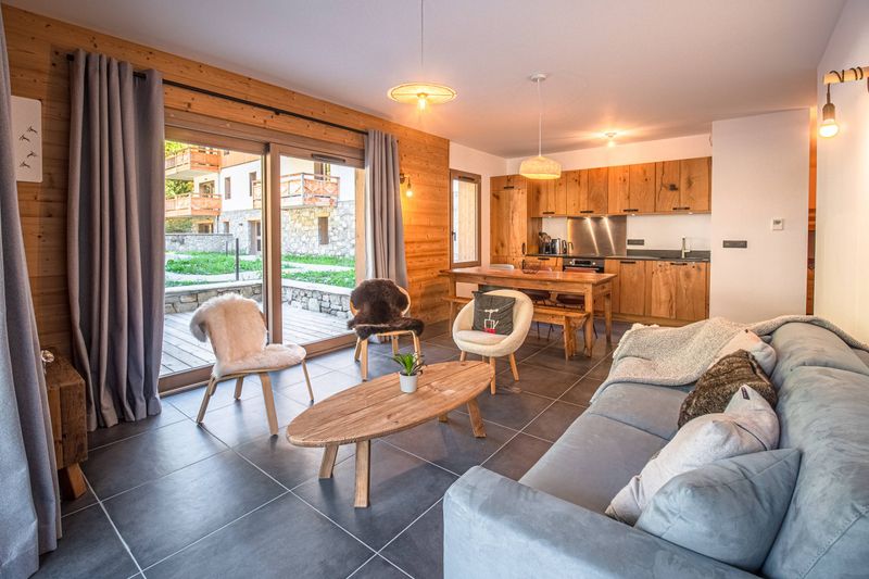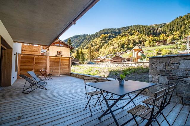 NOUVEAU A CHAMPAGNY EN VANOISE ! LES TERRASSES DE LA VANOISE - Résidence de standing 4* avec prestations hôtelières et service de conciergerie ! Appartement NEUF 7 personnes, 71 m² avec 2 chambres + coin montagne, une magnifique TERRASSE, exposée NORD-OUEST avec vue dégagée sur le village de Champagny en Vanoise et les sommets environnants. Décoration cosy et contemporaine ! Situé en rez de chaussée. Sa situation lui garantit calme et soleil en après-midi. Services inclus : lits faits, linge de toilette, ménage de fin de séjour. 1 PLACE DE PARKING INCLUSE. WIFI INCLUS.