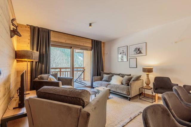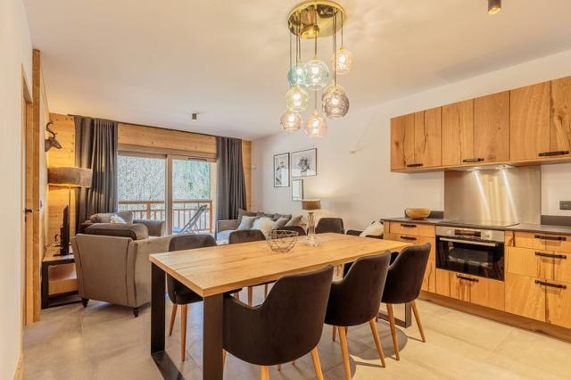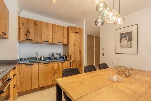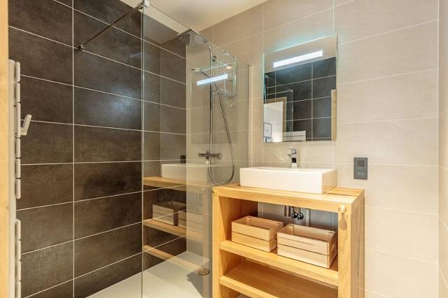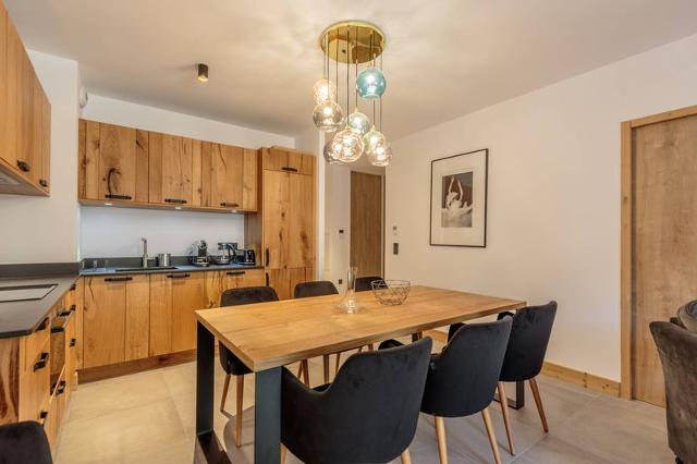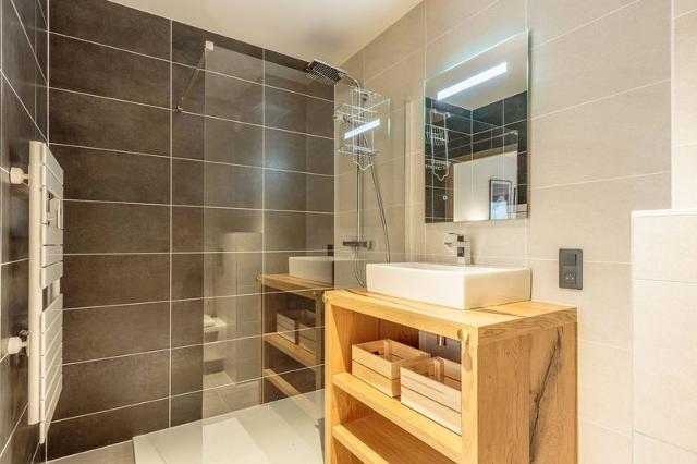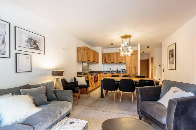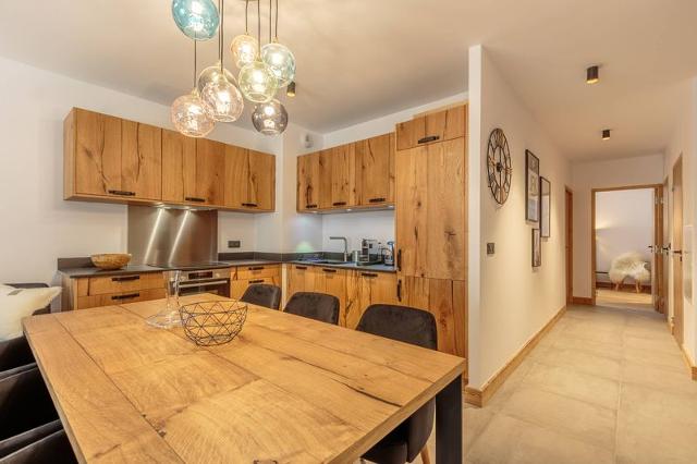 Situé au 1er étage avec ascenseur - Cuisine ouverte, parfaitement équipée avec lave-vaisselle, plaque à induction, four multifonctions (four + micro-ondes), réfrigérateur, congélateur, cafetière Nespresso, bouilloire électrique, grille-pain, appareils à raclette, et à fondue - Coin repas spacieux avec une table et chaises-fauteuils - Séjour confortable avec un grand canapé, 2 fauteuils, TV satellite HD écran plat (107 cm) - 1 grand balcon très ensoleillé, exposé SUD-SUD EST, avec une vue superbe sur les montagnes, équipé d'1 table et 2 chiliennes - Chambre 1 avec 1 lit double (2 personnes. 160 x 200 cm), TV, fauteuil, sa salle de douche, WC et de nombreux rangements - Chambre 2 avec 2 lits simples (2 personnes. 90 x 200 cm), possibilité de lit double (180 x 200 cm) sur demande, avec douche ouverte et lavabo - Chambre 3 avec 2 lits simples (2 personnes. 90 x 200 cm), possibilité de lit double (180 x 200 cm) sur demande, avec grand dressing - 1 salle de bain avec baignoire, sèche-serviettes et lave-linge séchant - 1 WC indépendant