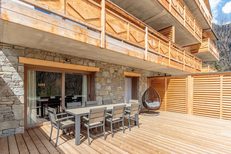 NOUVEAU ! Résidence de standing 4* à Champagny-En-Vanoise ! Appartement 6/8 personnes, de luxe flambant neuf avec une décoration moderne et des appareils Bosch haut de gamme, avec 3 chambres séparées + coin montagne (lits superposés), d'une surface habitable de 95m2. Appartement d'exception au rez-de-chaussée, accessible aux personnes à mobilité réduite , avec aide, avec une grande terrasse orientée sud-est offrant un espace de vie extérieur en été et une vue sur les sommets. Situé à quelques pas du centre du village et de la télécabine de Champagny qui permet de rejoindre directement les pistes de Paradiski (La Plagne et Les Arcs) avec un service régulier de navettes en hiver. Un court trajet en voiture vous amène également au Praz avec son grand parking souterrain, sa connexion en télécabine à Courchevel et ses liaisons vers le reste des Trois Vallées, notamment Méribel et Val Thorens. Inclus : lits faits, linge de toilette, ménage de fin de séjour, 2 places de garage et WIFI inclus.