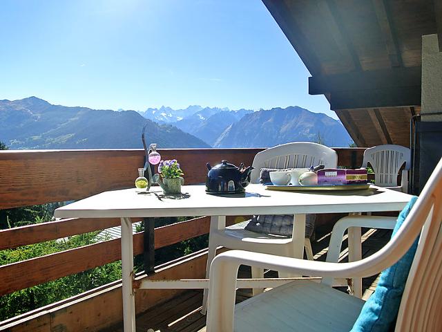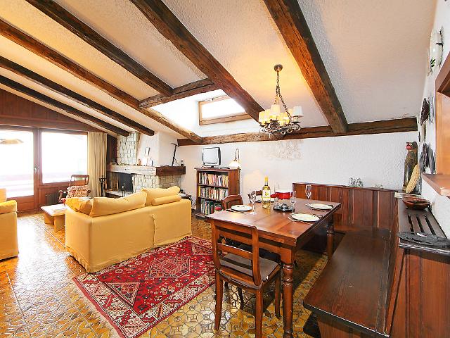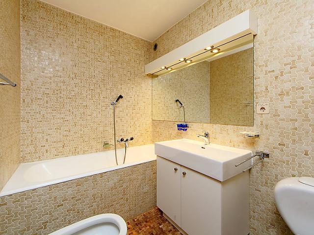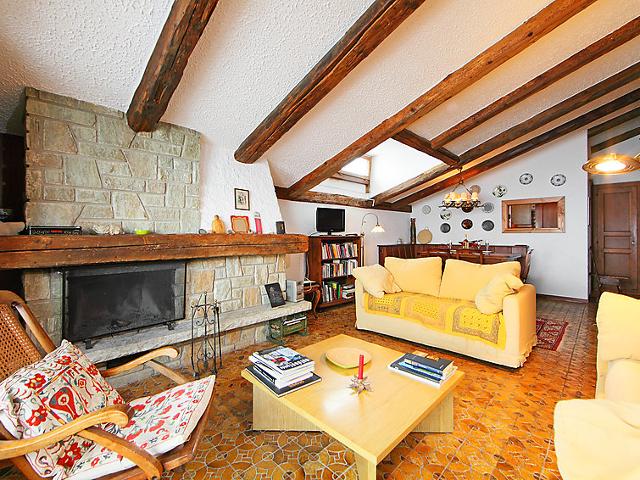 "Mirador", apt sous les toits 5 pièces 100 m2 au 3ème étage. Aménagement confortable et agréable: grand séjour/salle à manger avec cheminée et TV (câblée). Sortie sur le balcon. 1 chambre avec 1 grand-lit (160 cm, longueur 200 cm), salle de bains. Sortie sur le balcon. 1 chambre avec 2 lits (90 cm, longueur 200 cm). 1 chambre avec 1 x 2 lits superposés (90 cm, longueur 190 cm). 1 chambre avec 1 lit (90 cm, longueur 190 cm). Coin cuisine (four, lave-vaisselle, 4 plaques vitrocéramique, combiné micro-ondes). Salle de bains, douche/WC. Mobilier de balcon. Vue panoramique sur les montagnes. A disposition: Internet (Connexion WIFI, gratuit). Garage (2 Voitures). Maximum 2 animaux/ chiens autorisés.