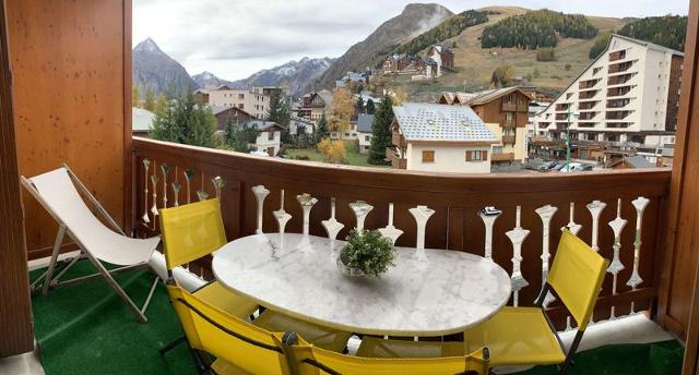 Balcon exposé OUEST avec vue dégagée sur les montagnes et la station.