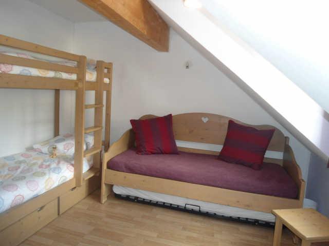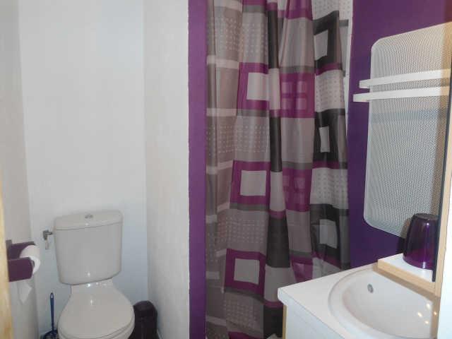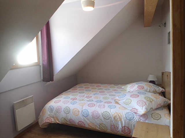 une entrée, une première chambre avec 1 lit double et 1 lit simple, une seconde chambre avec 2 lits superposés, un lit gigogne pour 2 personnes et des placards, une salle d'eau avec wc, un coin cuisine équipé et un salon-salle à manger avec une banquette lit 2 personnes.
