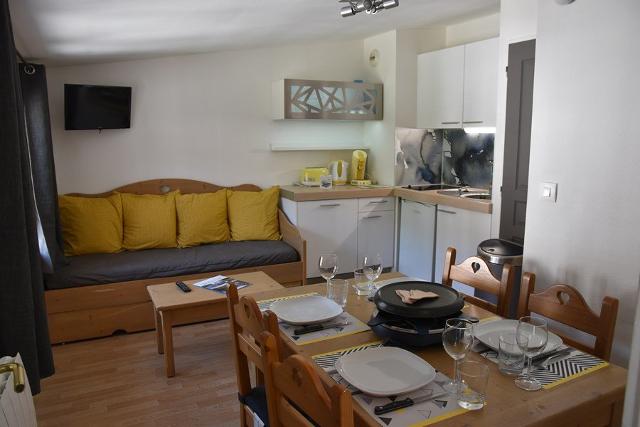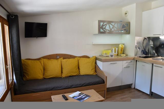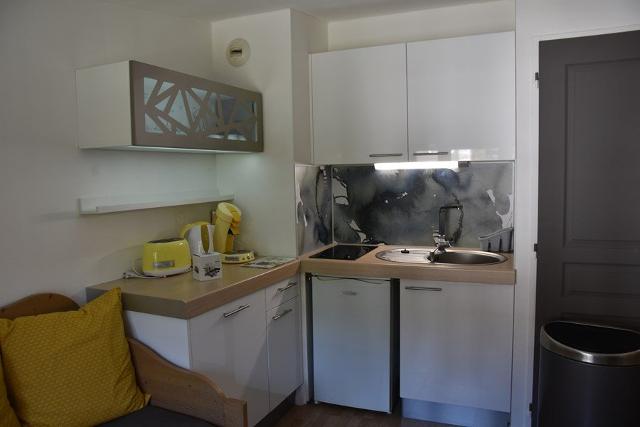 Le logement est situé au 3ème étage sans ascenseur. Il est composé d'une entrée, une chambrette avec lits superposés, dressing et fenêtre exposition nord, un salon avec des lits gigognes et une télévision . La kitchenette est équipée de deux plaques vitrocéramiques, un réfrigérateur, un lave-vaisselle et un micro-ondes. Il y a une salle d'eau avec douche et wc. Le logement a une vue dégagée.